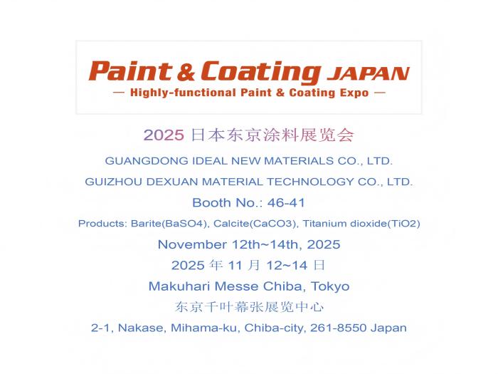 Guangdong Ideal New Materials Co., Ltd. focus on chemical powder products like barium sulfate, calcite and titanium dioxide research, development and sales. Own production factory Guizhou Dexuan Material Technology Co., Ltd. in Guizhou, China and 3 barite mines, the factory in local covers an area of 34,000 square meters, an annual capacity of 200,000 tons of barite(barium sulfate), 100,000 tons of calcite and 50,000 tons of titanium dioxide. We use high-quality raw ore, independent research and development of advanced production technology, the production of high-end barium sulfate, calcite and titanium dioxide, are widely used in coatings, paints, plastics, rubber, paper-making, leather, filler masterbatch, toothpaste, ceramics, oil and gas drilling and other industries.